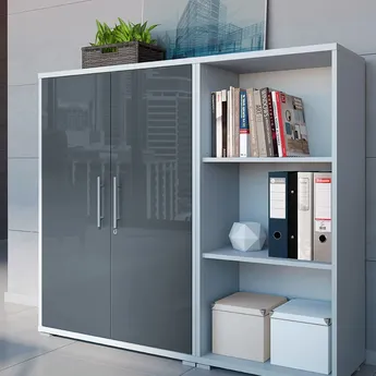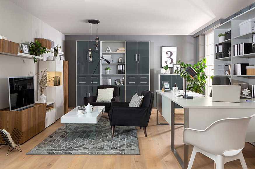 System Office Lux pozwala swobodnie łączyć elementy i dopasować je do wielkości i charakteru pomieszczenia – zarówno do indywidualnego gabinetu, jak i do większej przestrzeni biurowej.
