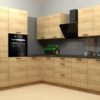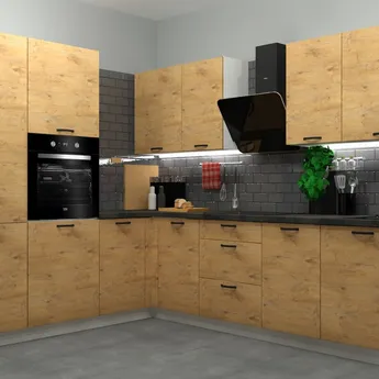 Meble kuchenne Hamper z linii Family Line Black Red White to doskonały wybór dla miłośników nowoczesnego, loftowego stylu. Kolekcja łączy wyraziste, ciemne fronty z efektem naturalnego drewna i matowymi, czarnymi dodatkami, tworząc wyjątkową przestrzeń o charakterze industrialnym. Proste formy, minimalistyczne detale i surowa estetyka sprawiają, że kuchnia Hamper przyciąga wzrok i idealnie wpisuje się w aktualne trendy wnętrzarskie.