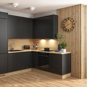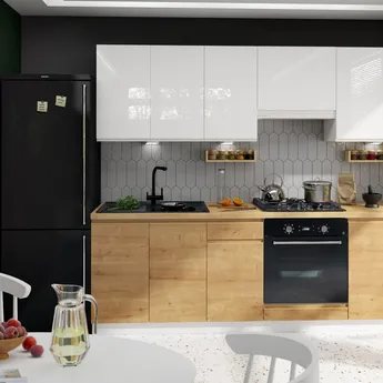 Meble kuchenne Sole Black Red White to połączenie praktycznych rozwiązań z nowoczesną estetyką, które idealnie sprawdzą się w każdej domowej kuchni. Kolekcja wyróżnia się prostym, ponadczasowym wzornictwem, subtelnymi frontami oraz stonowaną kolorystyką – od ciepłych tonów drewna po uniwersalne biele i szarości. Dzięki temu meble Sole wprowadzają do wnętrza przyjazny klimat i lekkość, jednocześnie zapewniając wysoką funkcjonalność i estetykę.