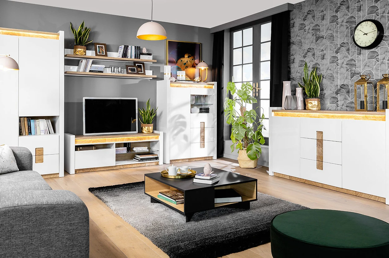 Elementy z kolekcji Alameda można łatwo dopasować do innych pomieszczeń – np. salonu – tworząc spójną estetykę całego mieszkania.