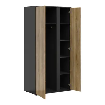 Meble Luen w kolorystyce dąb mauvella z czarnymi akcentami spełni oczekiwania wszystkich miłośników minimalistycznego designu i przemyślanych rozwiązań. Wykonana została z wysokiej jakości płyty laminowanej, która zapewnia trwałość i łatwość utrzymania w czystości.