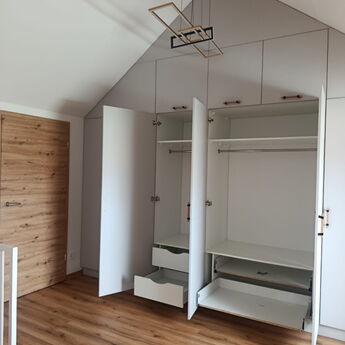 Tworzymy szafy, które są nie tylko meblem, ale praktycznym elementem codziennego życia – pomagają w organizacji, podkreślają styl wnętrza i ułatwiają codzienne funkcjonowanie.